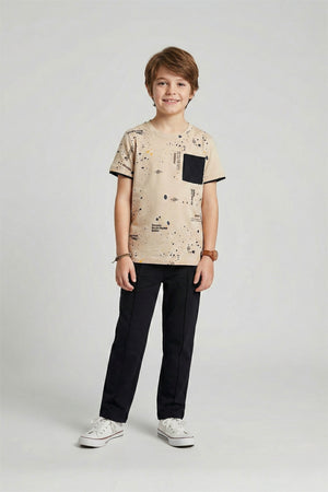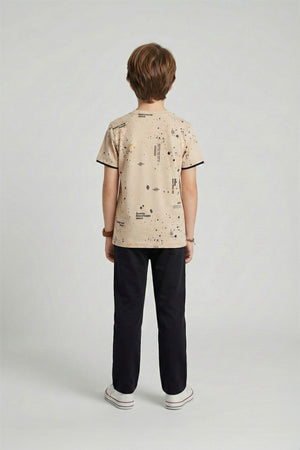 Kids Premium Quality "Rotri" Printed Summer Suit With Black Trouser