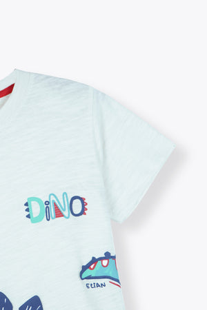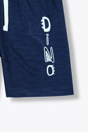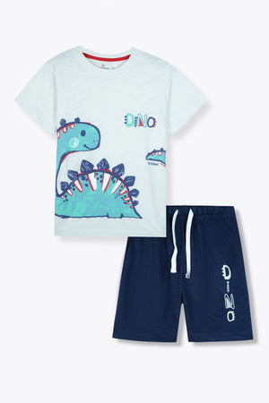 Premium Quality "Dino" Printed Boys Summer Suit with Navy Shorts