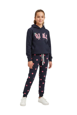 Premium Quality "Girl" Printed Fleece Hoodie suit With Polka Dot For Girls