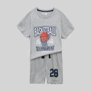 Kids Soft Cotton "Basketball" Printed Gray Suit