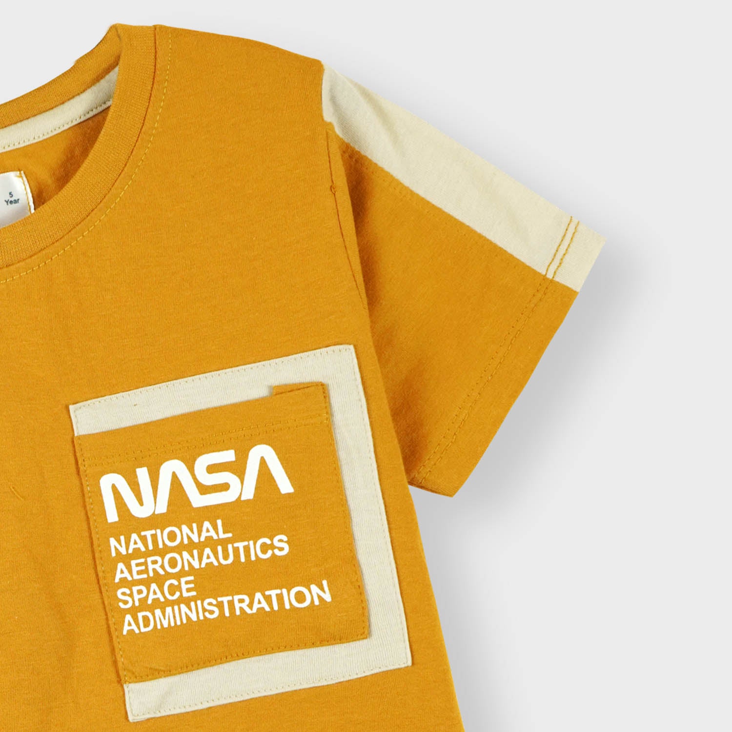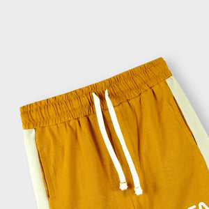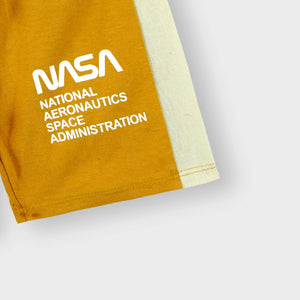 Elevate your little one's summer wardrobe with our Boys Premium quality 'NASA' printed summer suit. Crafted with careful attention to detail, this mustard-colored suit features text prints on the left chest side and left leg of the shorts. Perfect for your little explorer, this suit will keep them comfy and stylish all season long.