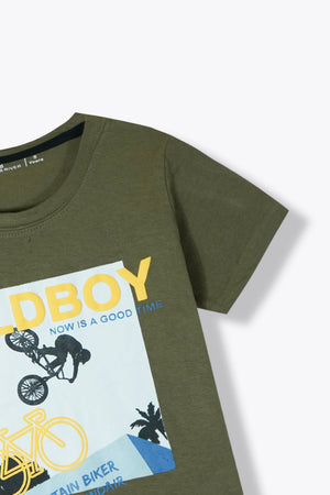 "Wild Boy" Printed Green Summer Suit with Black Shorts for Boys