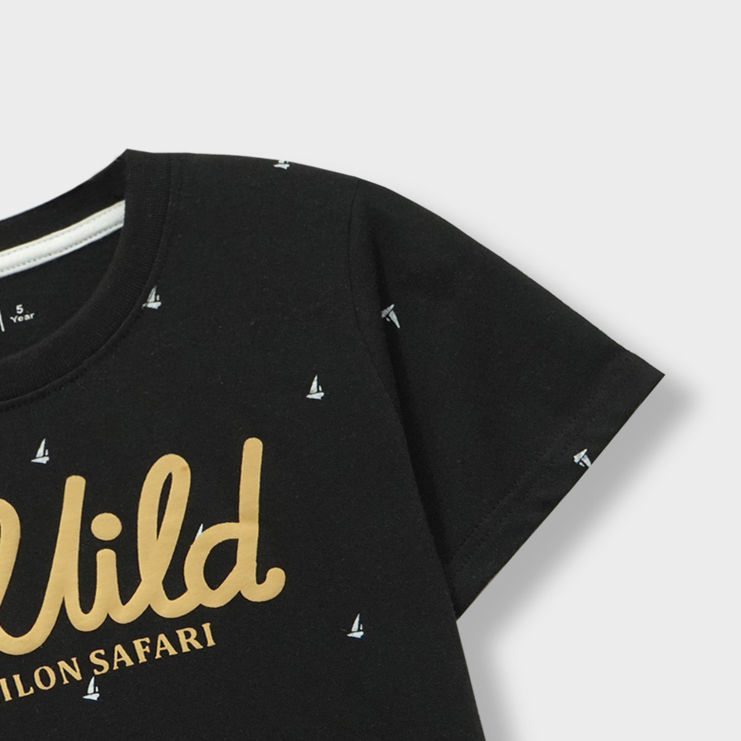 - Features a sticker print that says " WILD, MILON SAFARI"
